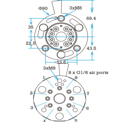 8xG1/8 air ports, adopt 6xM6 blots tapping into EOAT base plate