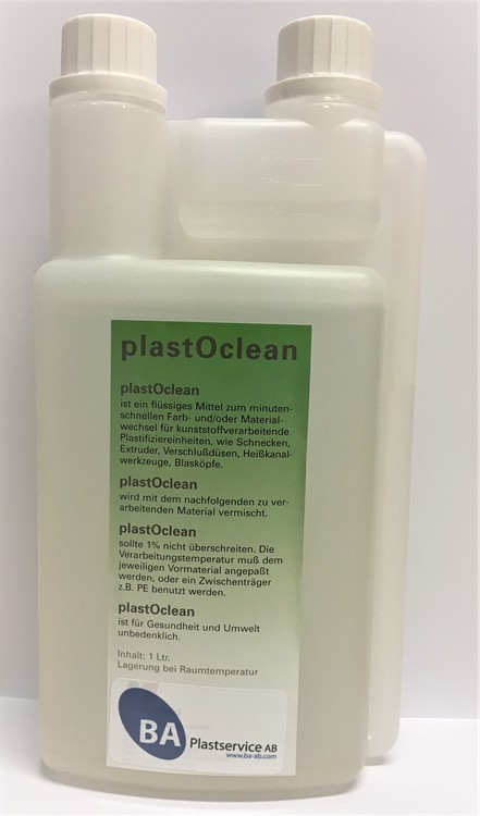 plastOclean® är ett flytande, klart och luktfritt medel, som har utvecklats för plastindustrin och hjälper till att minska bytetiden från en färg och/eller termoplast till en annan. Genom att blanda det med uppföljnings materialet (max. portion =1%), gör den högeffektiva plastOclean® det möjligt för dig att hålla skiften av material så korta som möjligt och ta bort den tidigare polymeren från bearbetningsmaskinen. Det finns inget behov av ytterligare användning av reningsmedel eller granulat och den är tillämpbar för alla typer av plast-maskiner, såsom extrudering eller formsprutning. Därmed reduceras mängden tid och kostnader till ett minimum. Kontakta oss för detaljerad information!